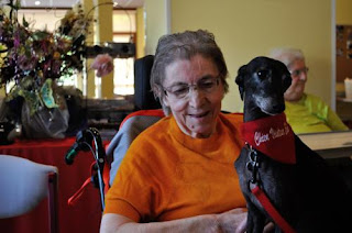 Avec Ebène notre mascotte (enfin celle de Michèle😅) toujours prêt à se faire bichonner par les résidents 😊